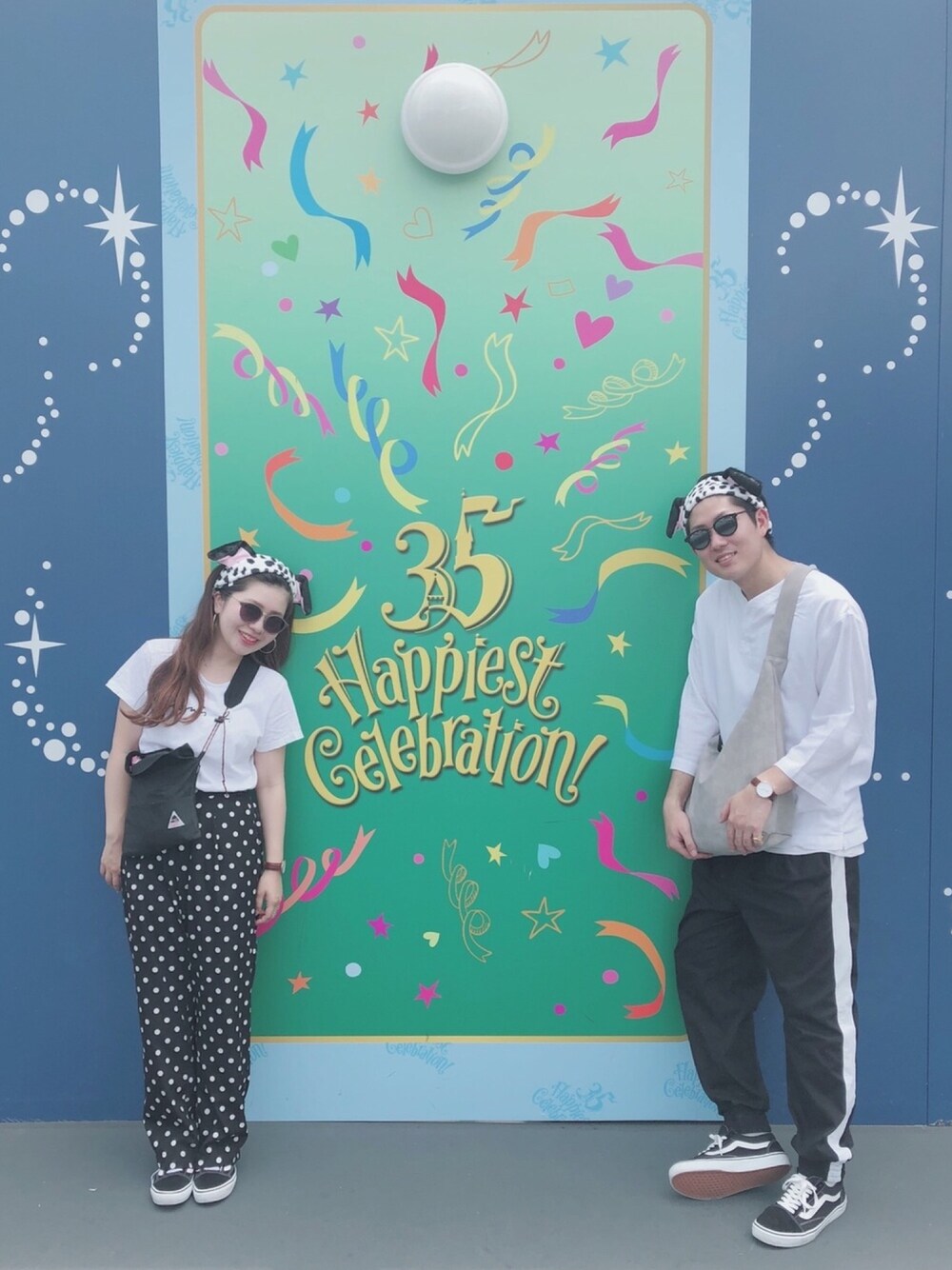 付き合って5周年記念でディズニーへ🐭💕 モノクロコーデにスニーカー合わせ! 耳は念願の101匹わんちゃん🐶