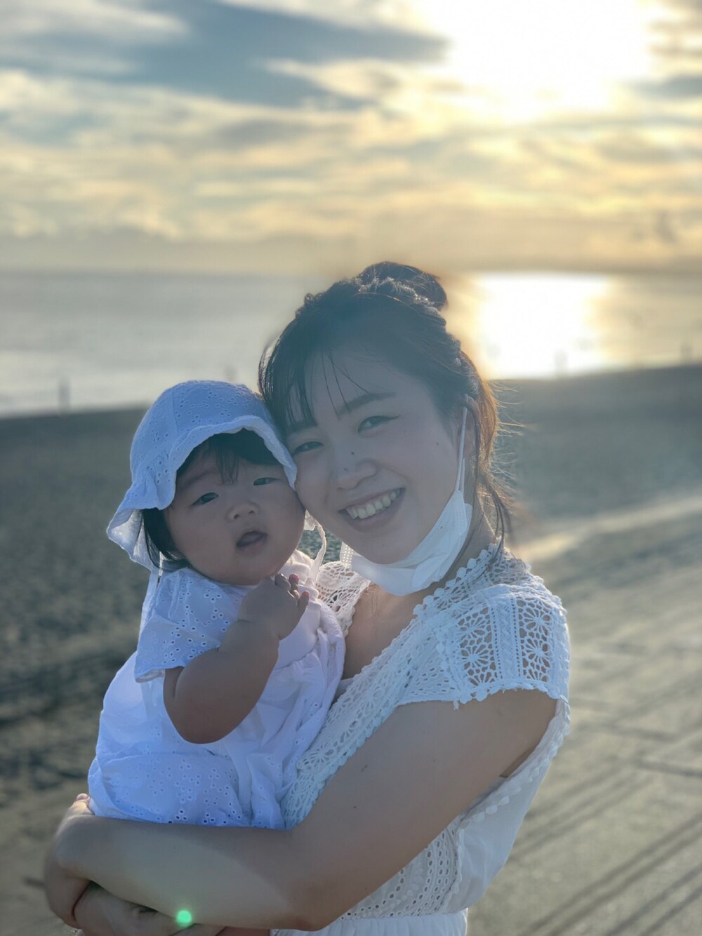 娘と合わせて白コーデ👗🤍🤍 私はデニムに合わせて、 カジュアルに着ております💓 チュニックはどんな体型の人でも いい感じに着れるからいいよね😌 海舟くんがすごくいい写真を とってくれました!