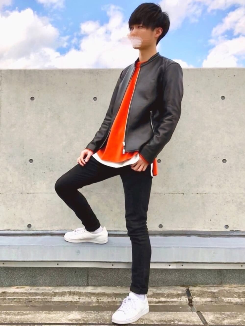 LIDnMコーデ🕺✨ ライダースとオレンジ🍊 アウター L ニット 2 レイヤード S パンツ 27