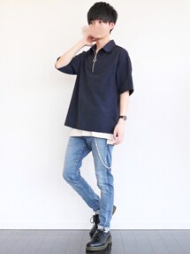 夏コーデ☀️ ハーフジップシャツ可愛い🤤 シャツ M タンク L