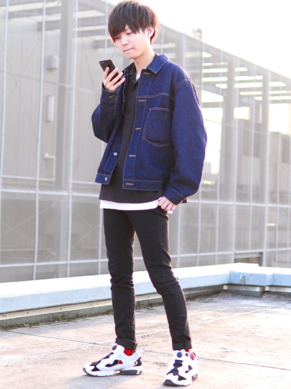 #リーボックラブ ⠀ ⠀ モノトーン+デニムジャケット👽 ! 白黒の個性的なリーボックがアクセント🙆🏻♂️ ⠀ ⠀ UNIQLO Uの新作デニムジャケットはシルエットがめちゃくちゃカッコよくて推しアイテムです😎 ⠀ ⠀ 靴下の赤と白のレイヤードがちょっとしたポイント🌱 ⠀ ⠀ jacket L shirt L pants 29