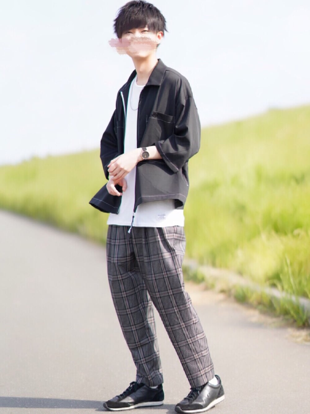 こめのスラックス「クラシカルチェックパンツ」を使ったコーディネート