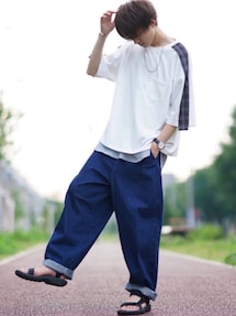 こめのTシャツ/カットソー「BASQUE magenta×KANGOL スーパービッグシルエットバックプリント半袖Tee 袖モチーフ刺繍」を使ったコーディネート