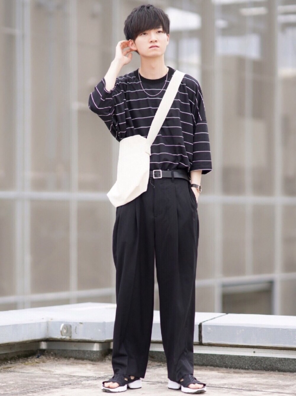 ボーダーT タックイン☑️ NO NEEDのボーダーTの肩の落ち感とオーバーサイズさがめちゃくちゃ可愛いです🙆🏻♂️ ビックTはタックインと相性抜群😎 t shirt Free pants M