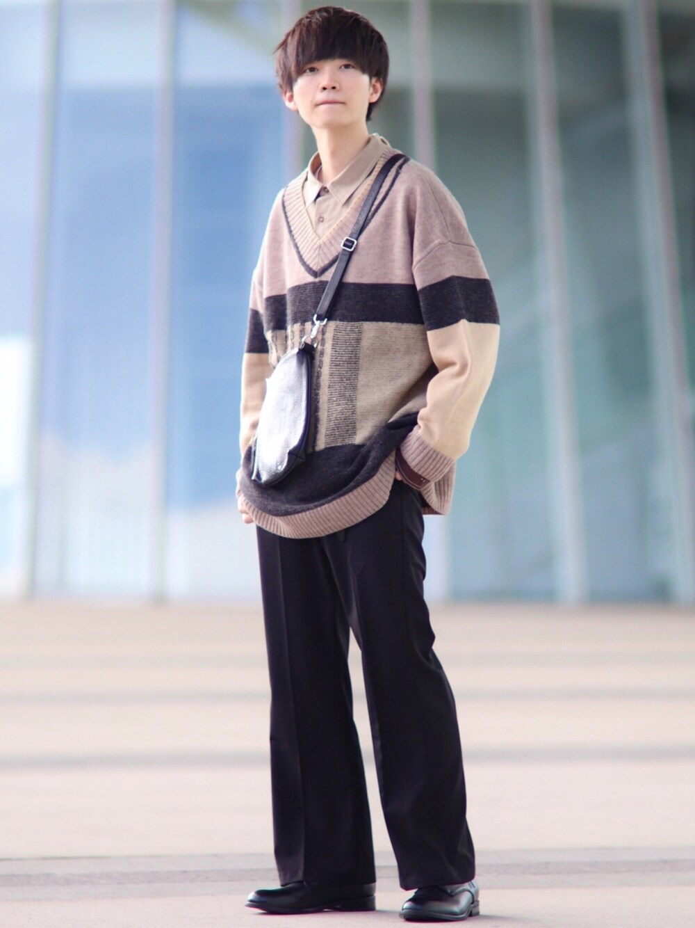 新ブランド「YON」のチルデンニットを使った綺麗めカジュアルコーデ😎 特殊編みなニットが個性的でめちゃくちゃ可愛い🙆🏻♂️ ちなみにインナーに着てるシャツは僕のコラボ第二弾の配色ステッチシャツです💡 詳細はまた後ほど🦉