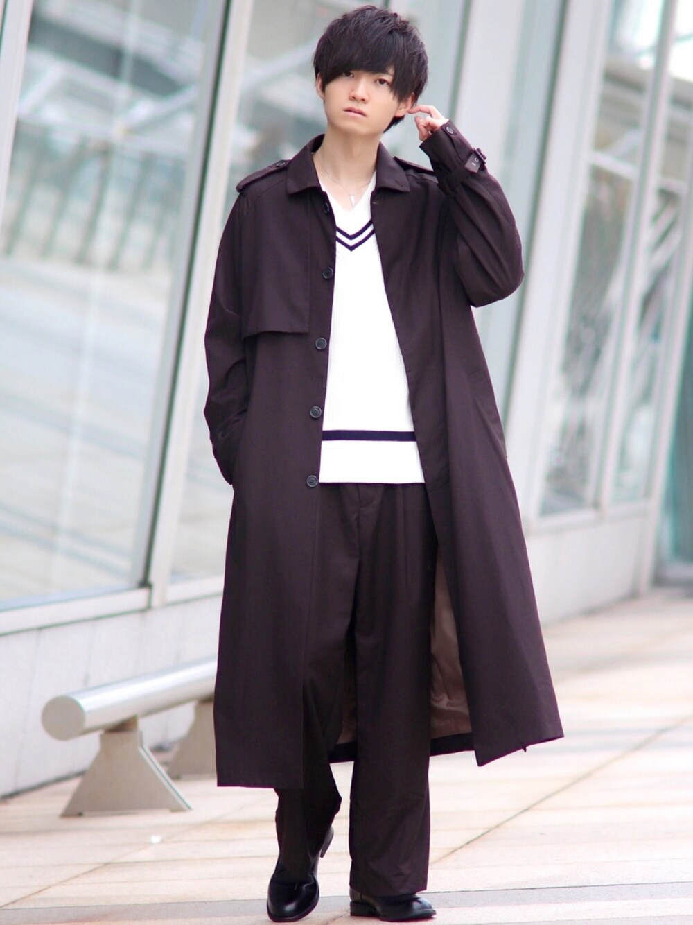 ブラウンセットアップ🍁 今日はWEARISTAにっしーさんオリジナルのトレンチコートとパンツのセットアップ😎 ロング丈のトレンチコートで作れるAシルエットめちゃくちゃカッコいいです🔥 今トレンドカラーのブラウンを使用したセットアップ!秋に映える事間違いなし😆 CasperJohnの革靴と合わせて綺麗めに!