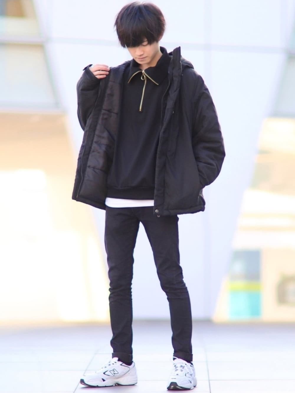 ブラックコーデ👻 alu standardのダウン軽くて暖かくてお気に入り🙆🏻♂️ 今ならZOZOTOWNで半額以下で買えちゃいます! KUUUPYのレイヤードがあるかないかでコーデの印象だいぶ変わります😎