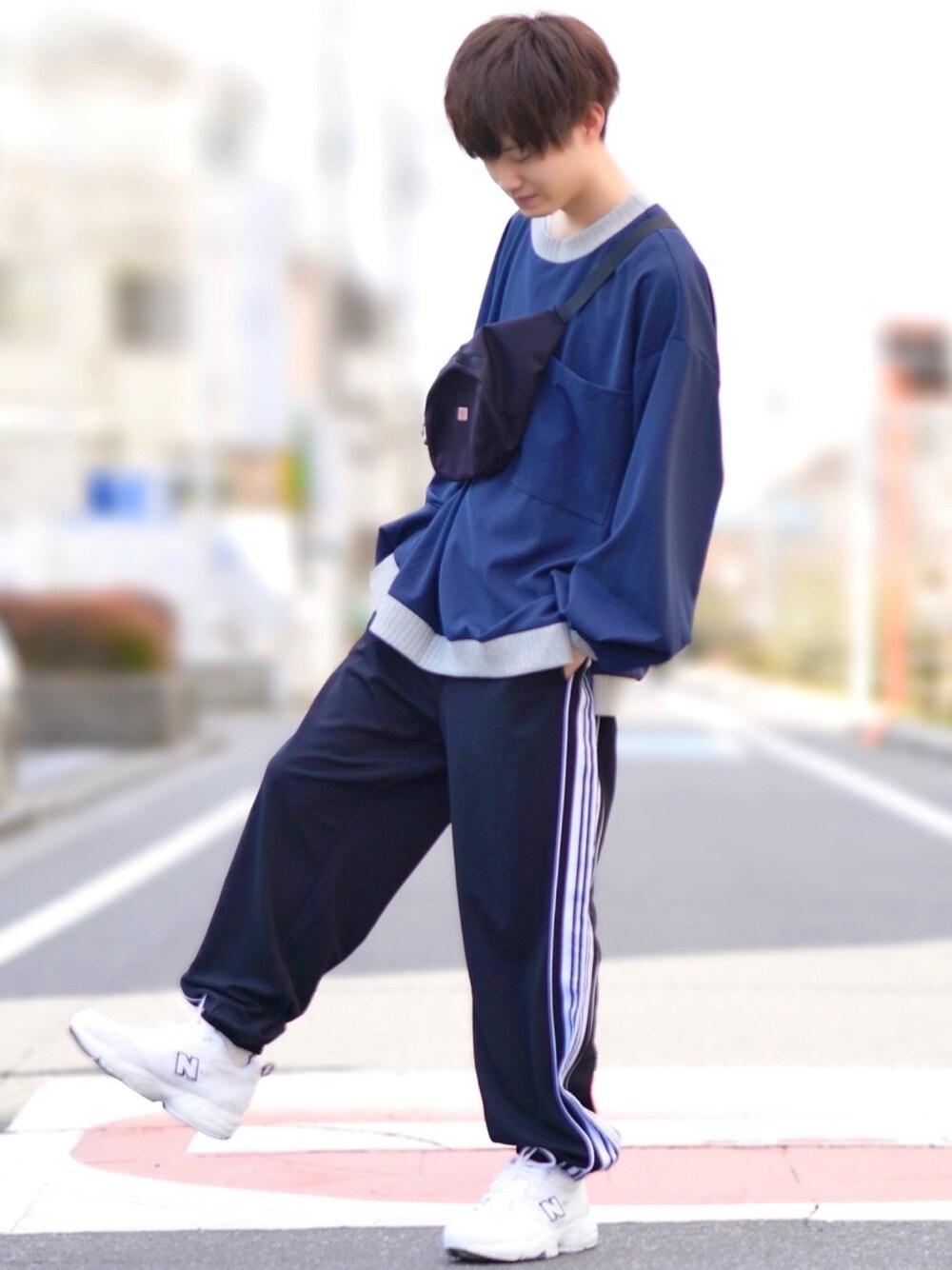 スウェットラフスタイル! 今日の目玉アイテムはact,mのラインパンツ😎 このゆったりしたシルエットとサイドのラインが可愛すぎ🌸 4本ラインで他と被らないのも良い🙆🏻♂️