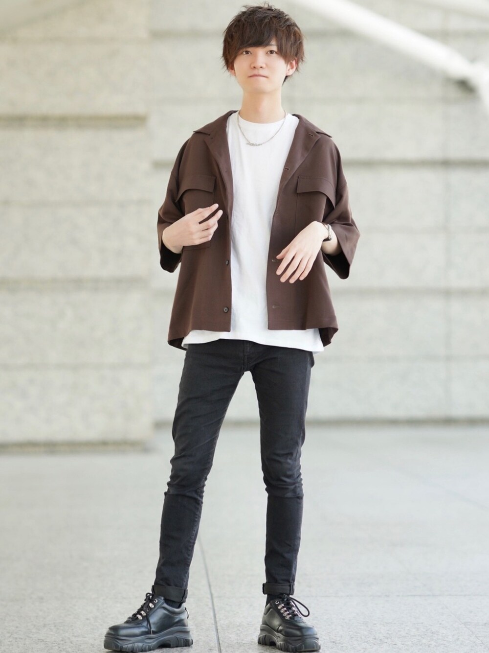 こめのシャツ/ブラウス「TRストレッチ スーツ地 オーバーサイズ ドレープ CPOシャツ/レギュラカラーシャツ(1/2 sleeve)」を使ったコーディネート