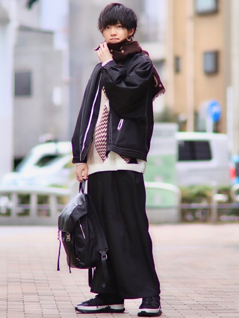 こめのライダースジャケット「TR & Paisley No-collar Riders/TR&ペイズリーノーカラーライダース」を使ったコーディネート