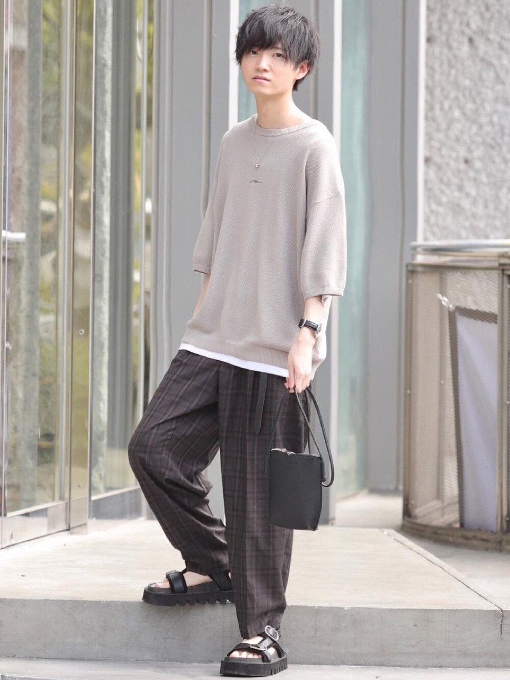 こめのTシャツ/カットソー「鹿の子編み ルーズサマーニットTシャツ」を使ったコーディネート