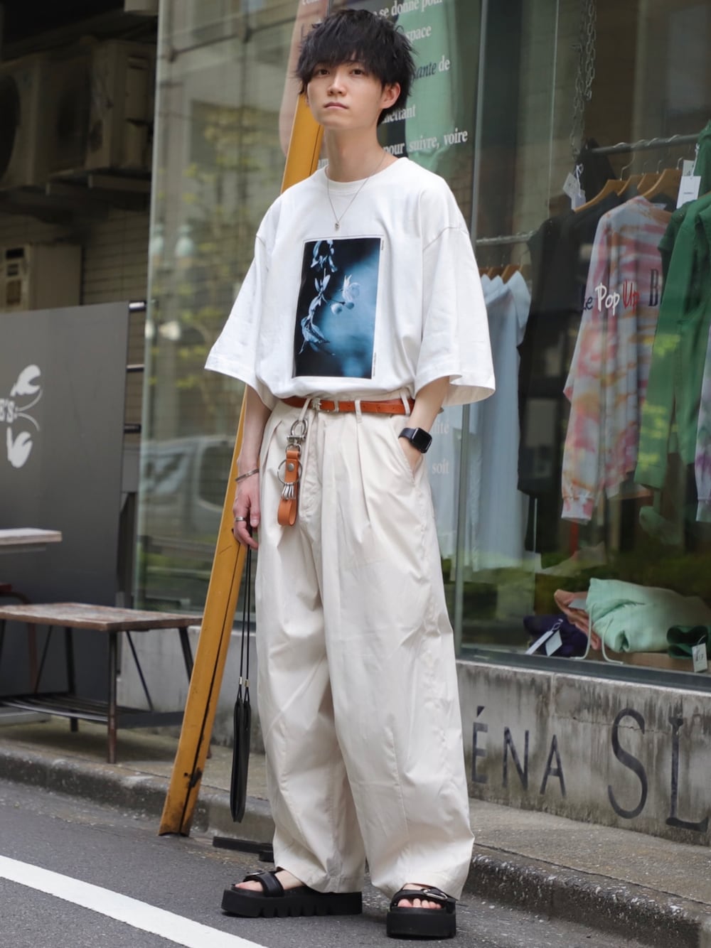 こめのTシャツ/カットソー「Alpinus - Flower graphic loose print Tee /フラワーグラフィックルーズプリントTシャツ」を使ったコーディネート