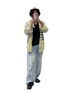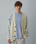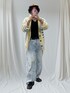 パブリックトウキョウのカーディガン 色合いが春っぽい aumiのデニムパンツ 淡い感じを合わせて Tシャツはパステルカラーの方がよかったかも?