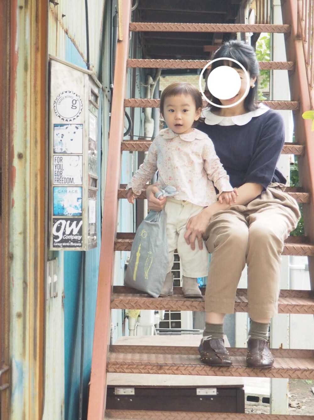 ❁親子コーデ❁ スカラップ襟のブラウスで リンクコーデしてみました♡ mina ×スカイツリーのバッグは 娘のおやつ入れ。 娘が持つのにちょうどいい♩ わたしのtricotの靴 修理に出して帰ってきたので早速。 高かったけどせっかくなので また履けるようになって うれしいです!