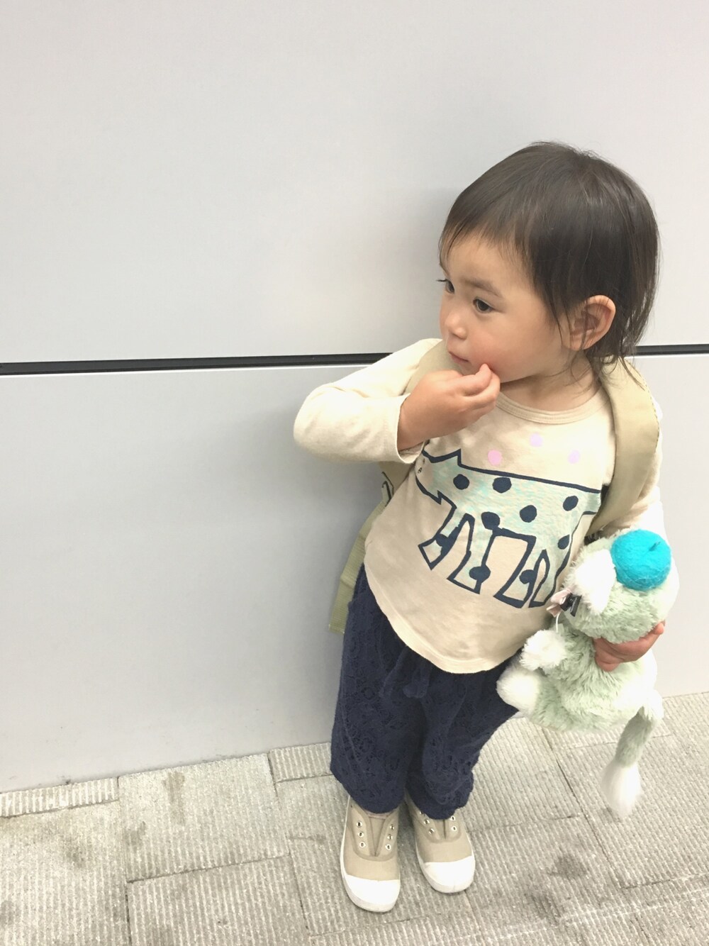 載せるほどのコーデでもないですが 久しぶりに全身の写真撮れたので 笑* ジェラトーニは毎日 出かける時につれていきます。 リュックの中身は お気に入りのおもちゃです♡ 保育園が2〜3歳児クラスになり ベビーカーなし、リュックで登園 するようになったよー