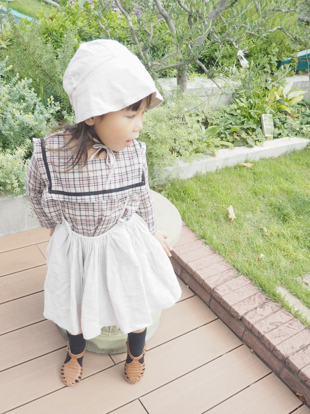 チェック柄に恋してる❤︎ このセーラーカラーのワンピース 小さくなってきて 丈が短くなったので トップスとして使ってます(๑′ᴗ‵๑) 帽子はmylittlemoonlightさんの プレゼント企画でいただいた 親子おそろいなんですが 母はまだ挑戦できてません〜笑*