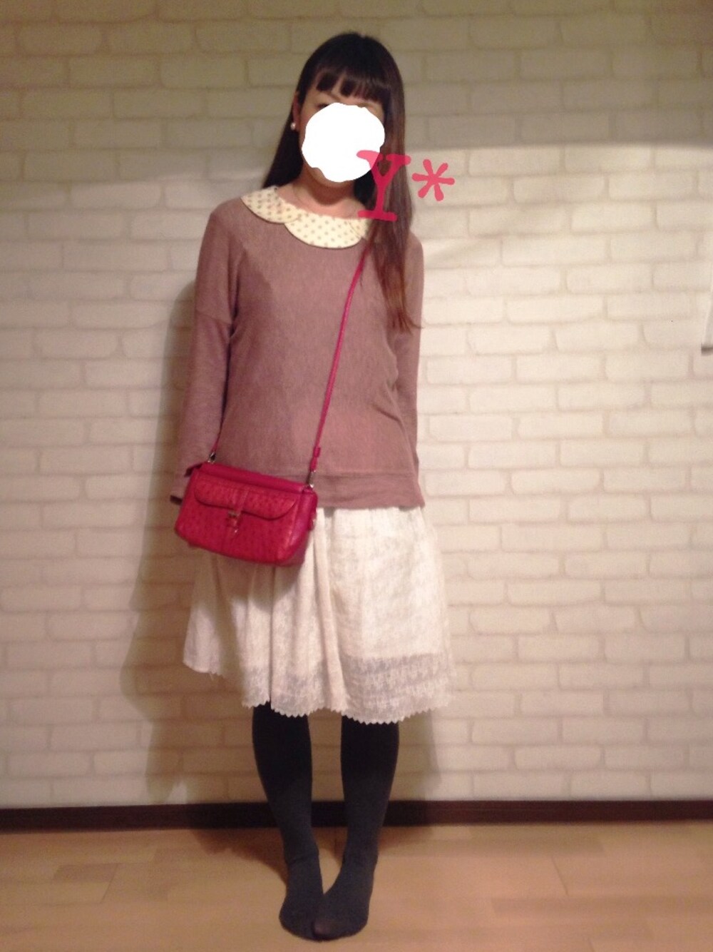 水玉模様⚫︎⚫︎⚫︎ 襟が気に入っているワンピースに ニットを合わせました❁ そしてワンピースのスカート部分は ペチコートにしました! 旦那さんの家族とお義兄さんの彼女と お食事会の日だったので お義母さんからもらったポシェットで♡