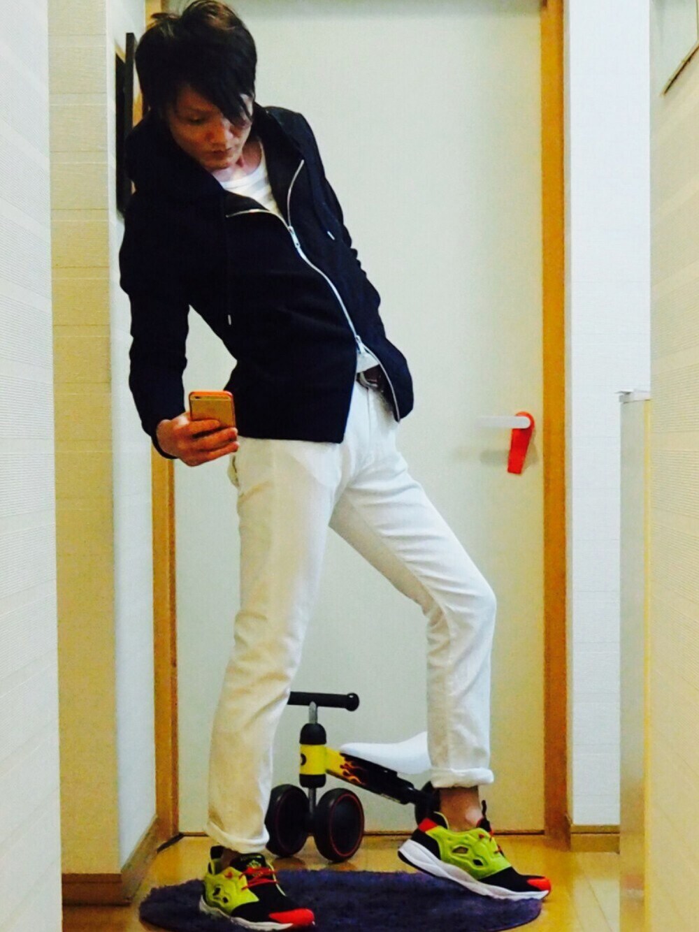 はぁくんのスニーカー「Reebok FURYLITE OG -Black/Hyper-」を使ったコーディネート