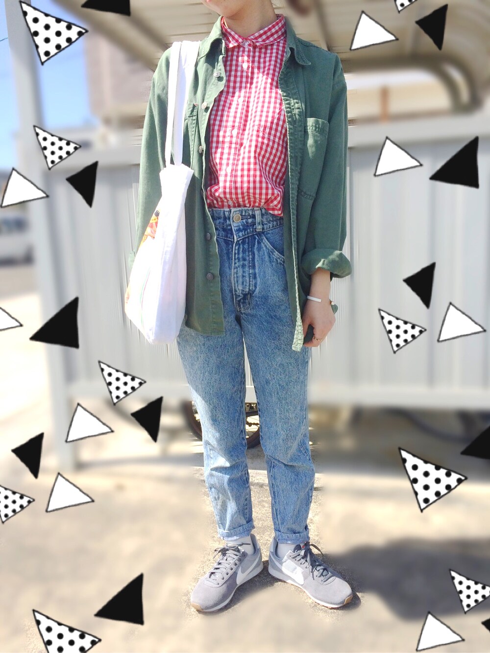 赤のギンガムチェックかわいい。 GUさまさま。 ハワイで買ったトート、フラダンサーが書いてあってかわいいっす。