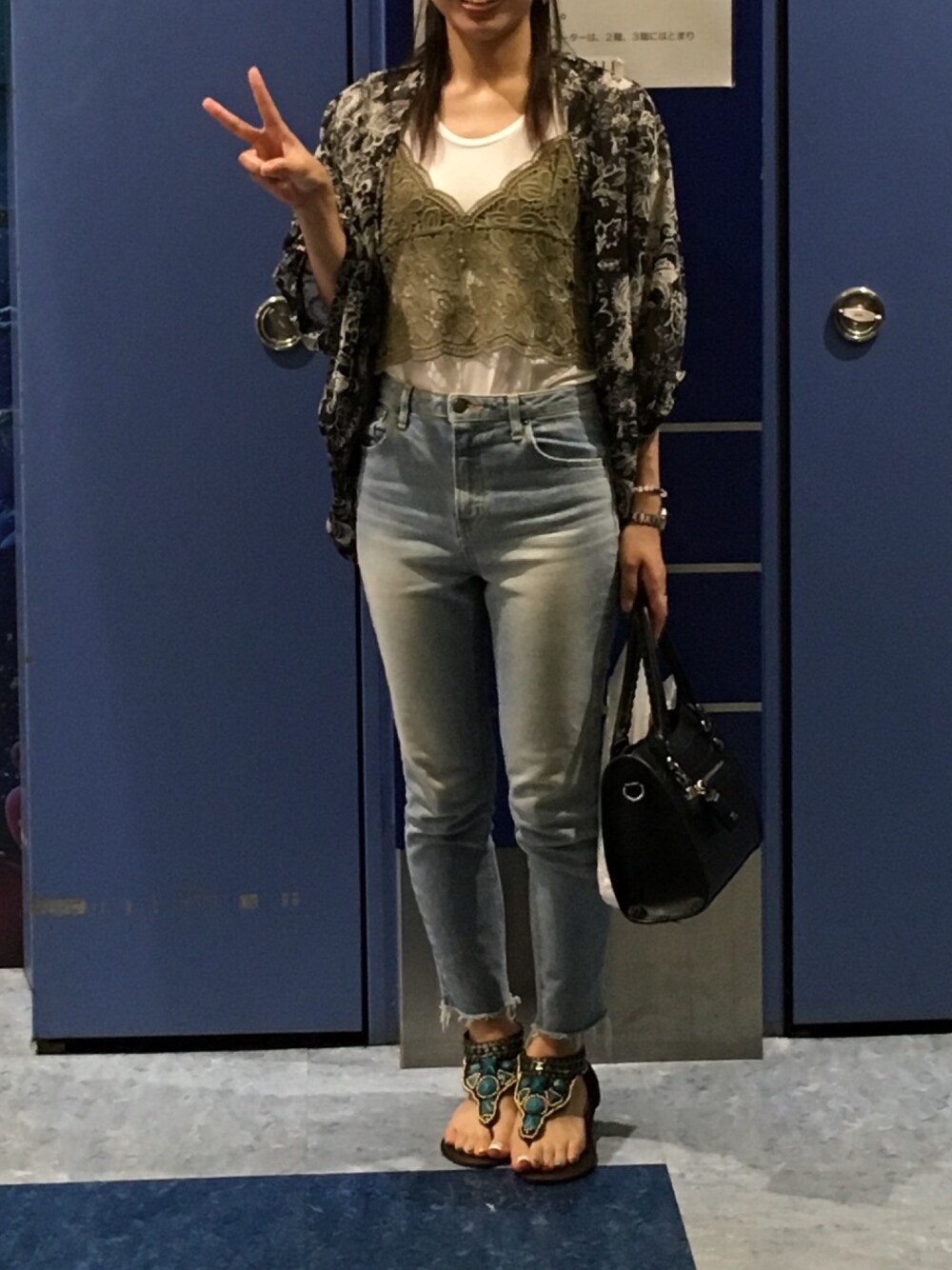 久々の投稿です。 25日にドリーを観てきました。 その時のコーデです。 羽織とサンダルはどこで買ったか思い出せない^^; ネットだったかと思います。 また気が向いたら載せてみようかなと思ってます。 基本マイペース(笑)