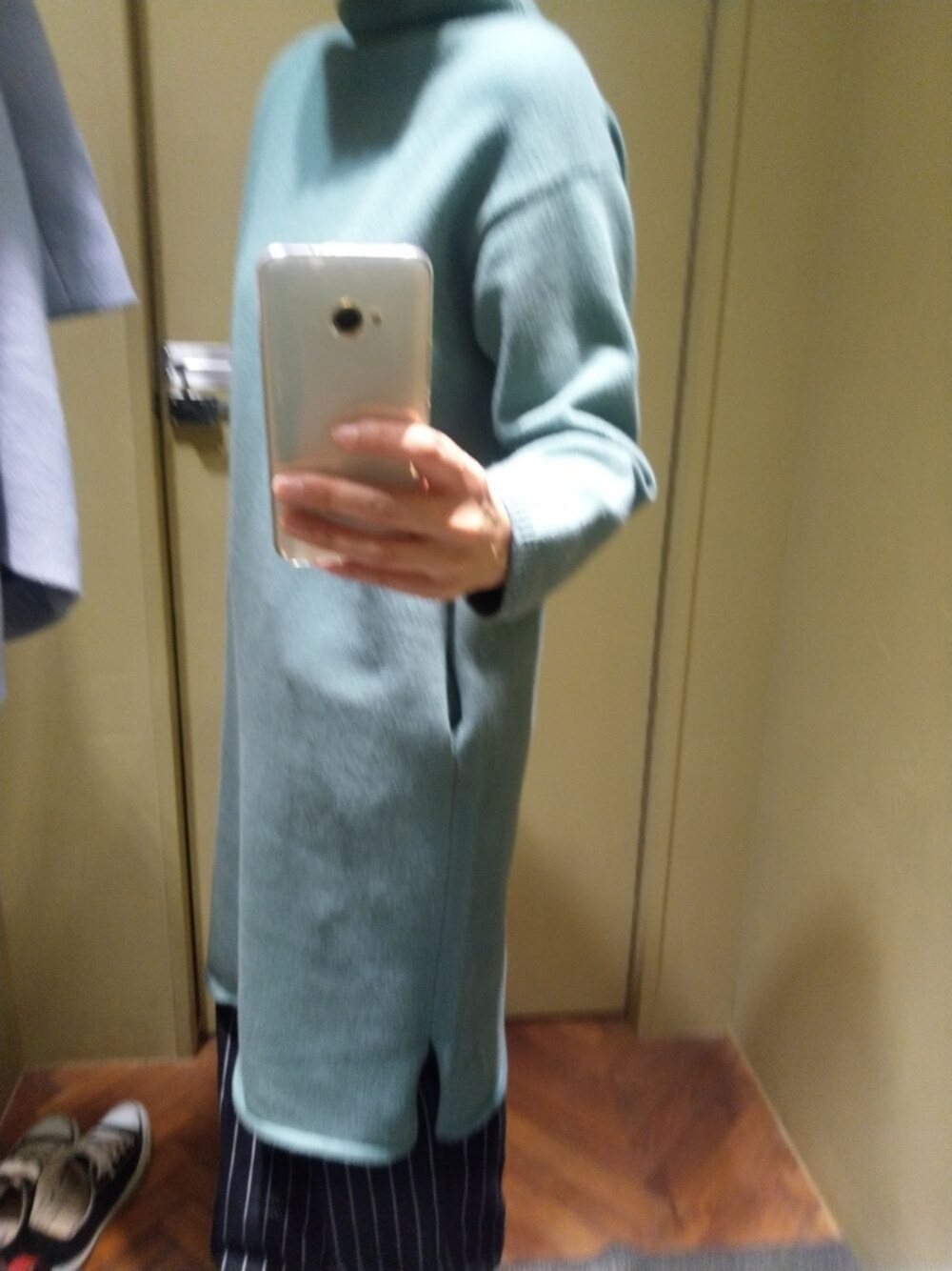 riのワンピース「スタンドカラーニットワンピース」を使ったコーディネート