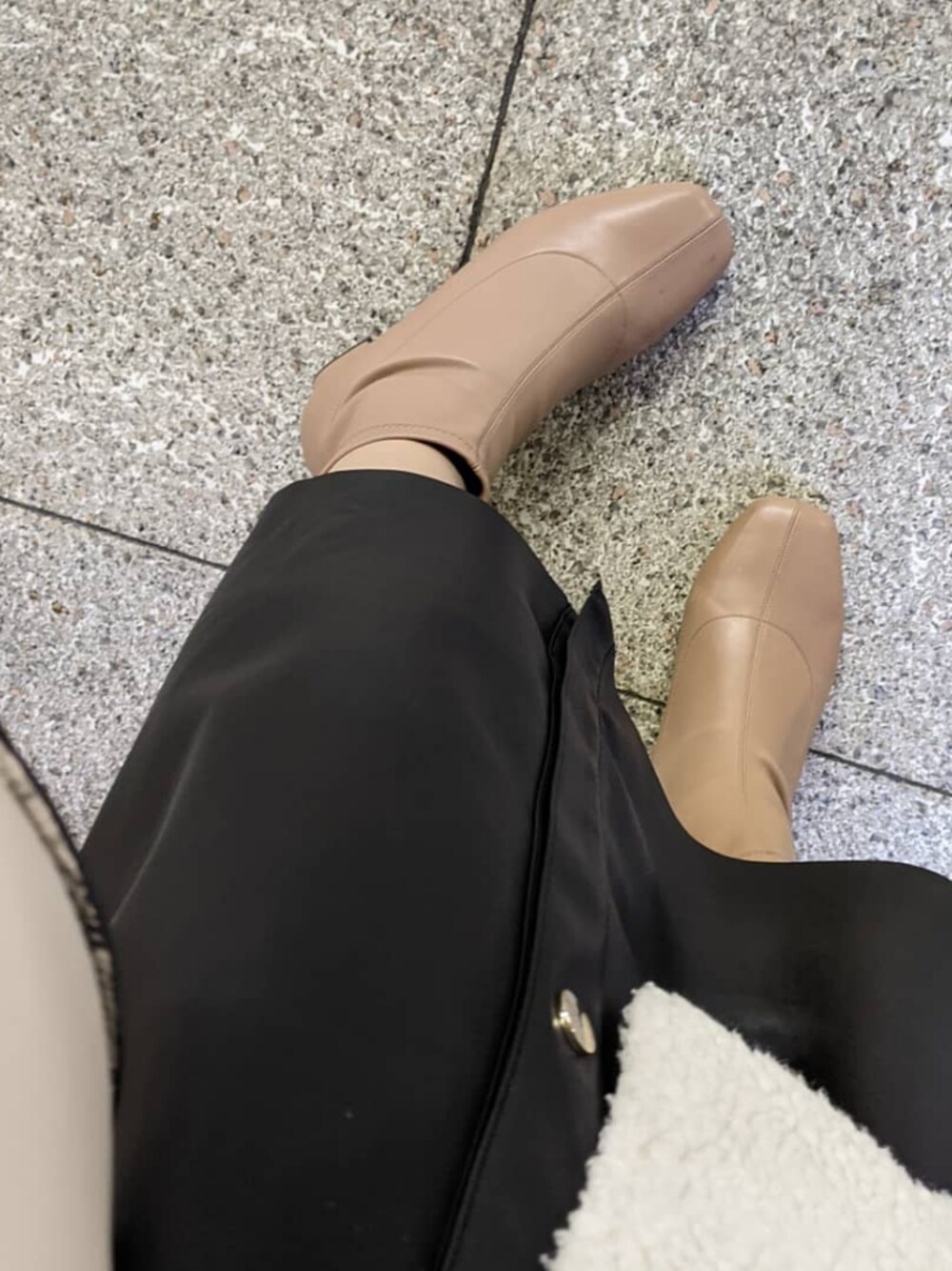 ピンクブラウンのショートブーツは形をいろいろ試着して納得したものがやっと見つかった! ザラのレザー調スカートはハードになり過ぎなくてかわいい!