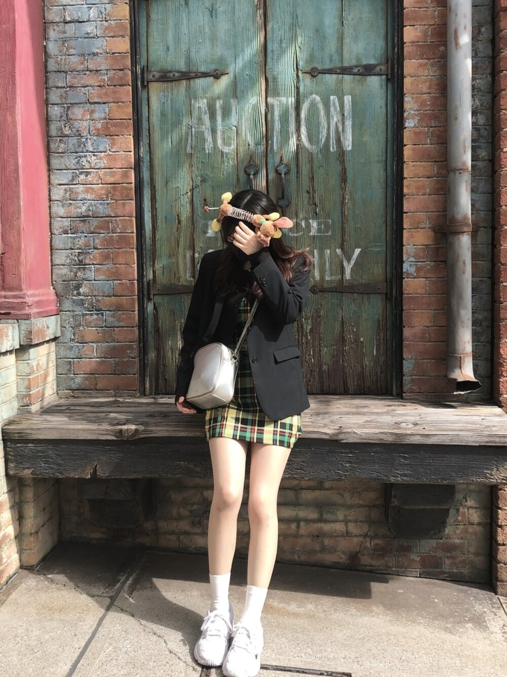 Bershkaのワンピースがお気に入りです❤︎ UNIQLOのジャケットはスーツとして着ていたものを私服でも着てみました。