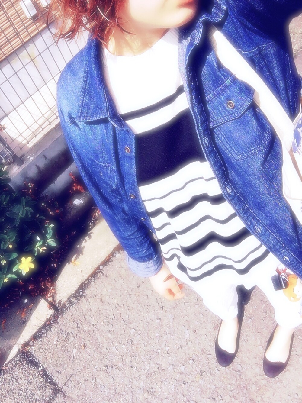 今日の通勤コーデ 中ノースリーブやからデニムシャツ着たけど暑すぎたー_|\○ _