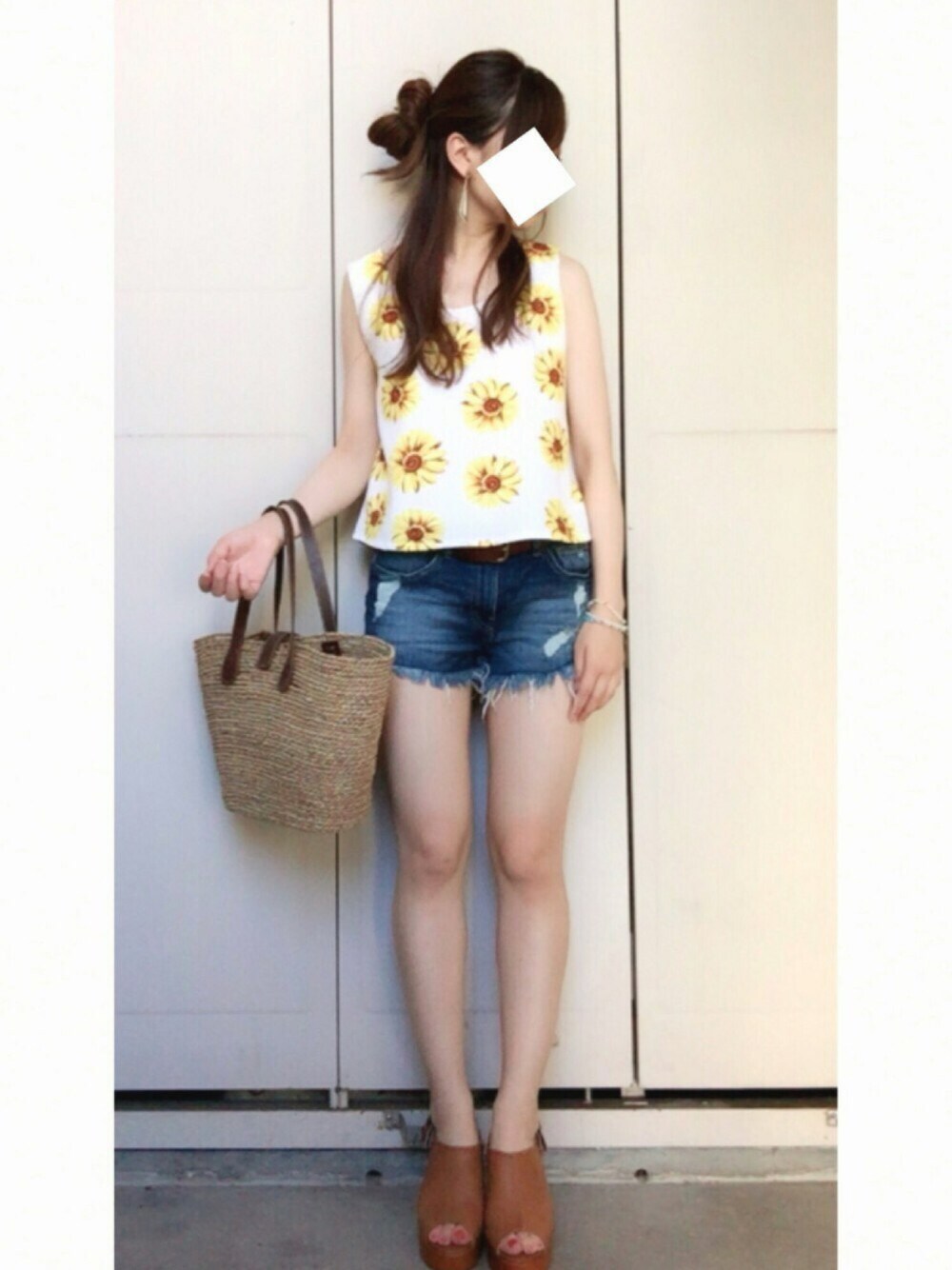 こんばんわ☺️ あと1週間で夏が終わる⁝(ᵒ̴̶̷᷄൧̑ ᵒ̴̶̷᷅ )⁝ ので、終わる前に夏! ショーパン🙄!ひまわり柄🌻💓 なんか若い格好(笑)肉々しい🍗🍖 トップスはコアのお店で買ったけど タグがなくてどこのかわからん😭 あー、はやいなぁ〜(˙o˙)(o:)(.o.)(:o) 今年もそんなに焼けずに終わりそう🤔 見てくれてありがとうございます❤