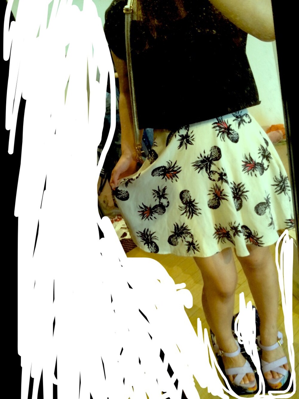今日はボーイッシュじゃない格好したよー 今年はパイナップル柄にハマり中。 トップスはシンプルなベルシュカのショート丈Tシャツ。 大きめのネックレスしようと思って忘れた…