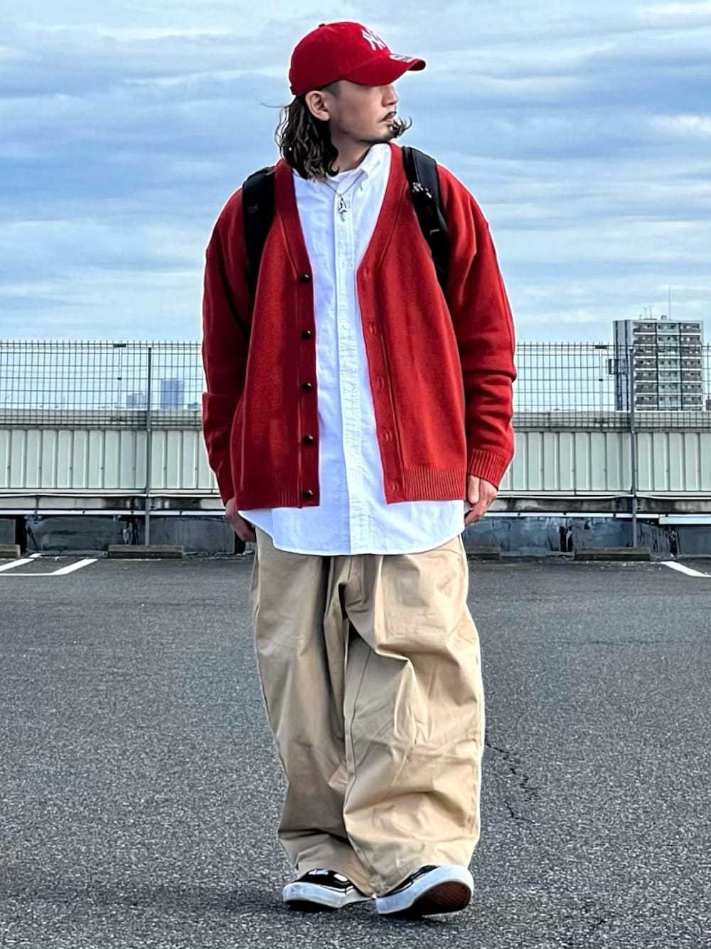 【PR】おはようございます😃 今日はMONO-MARTのAW新作‼︎ ボリュームニットルーズカーディガンを使ったコーデです🙌 トレンドのオレンジのカーディガンはストリート感も出せておススメです👍 ゆるめのサイズ感も◎ 赤キャップと合わせて更にインパクトのあるコーデにしました🔥