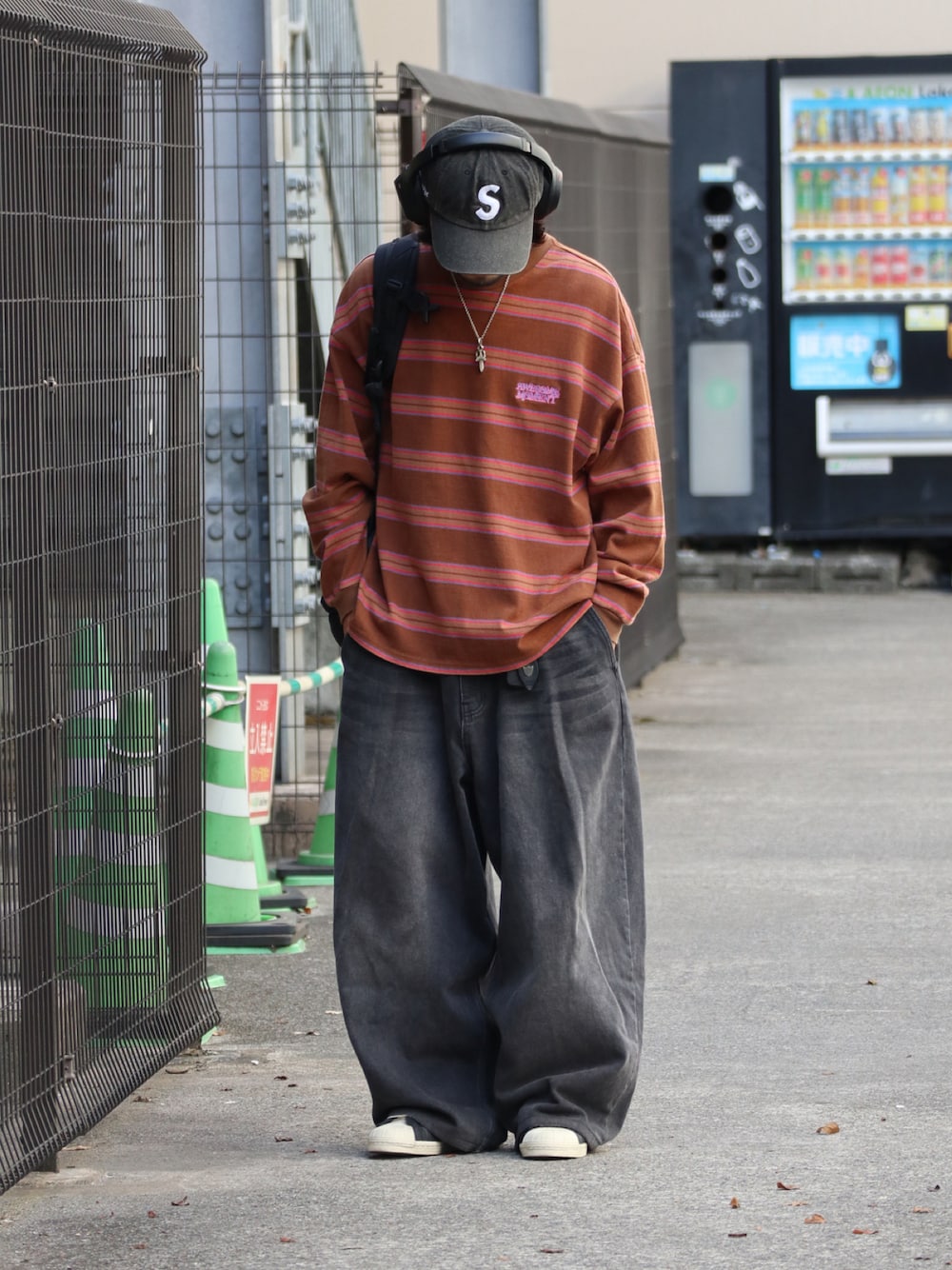 ブラウンのボーダーロンTを使ったコーデです🙌 @daigo_wear Instagramも更新しています🔥 是非覗いてみてください‼︎