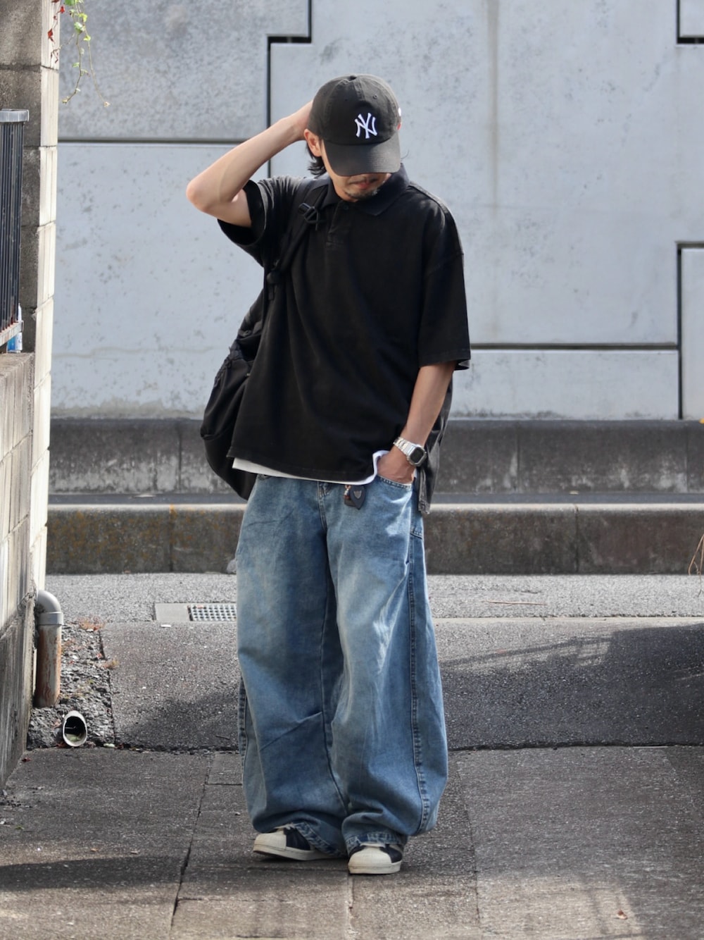 ケミカル加工のポロシャツを使ったコーデです🙌