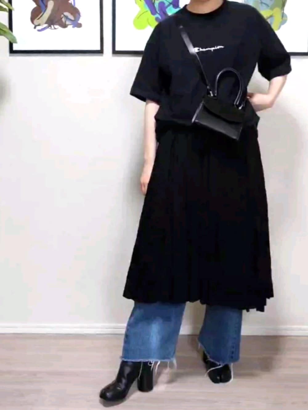 オールブラック + デニム