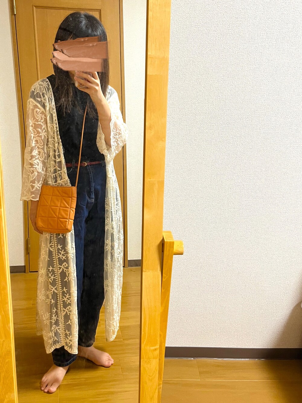 久しぶりにお友だちと飲み🍺 いつもはこういうときはスカートだけど 今日はレースガウンの気分だったので パンツスタイル👖 バッグもブランドの気分でなかったので オレンジのショルダーにしました🍊 🌝/20℃