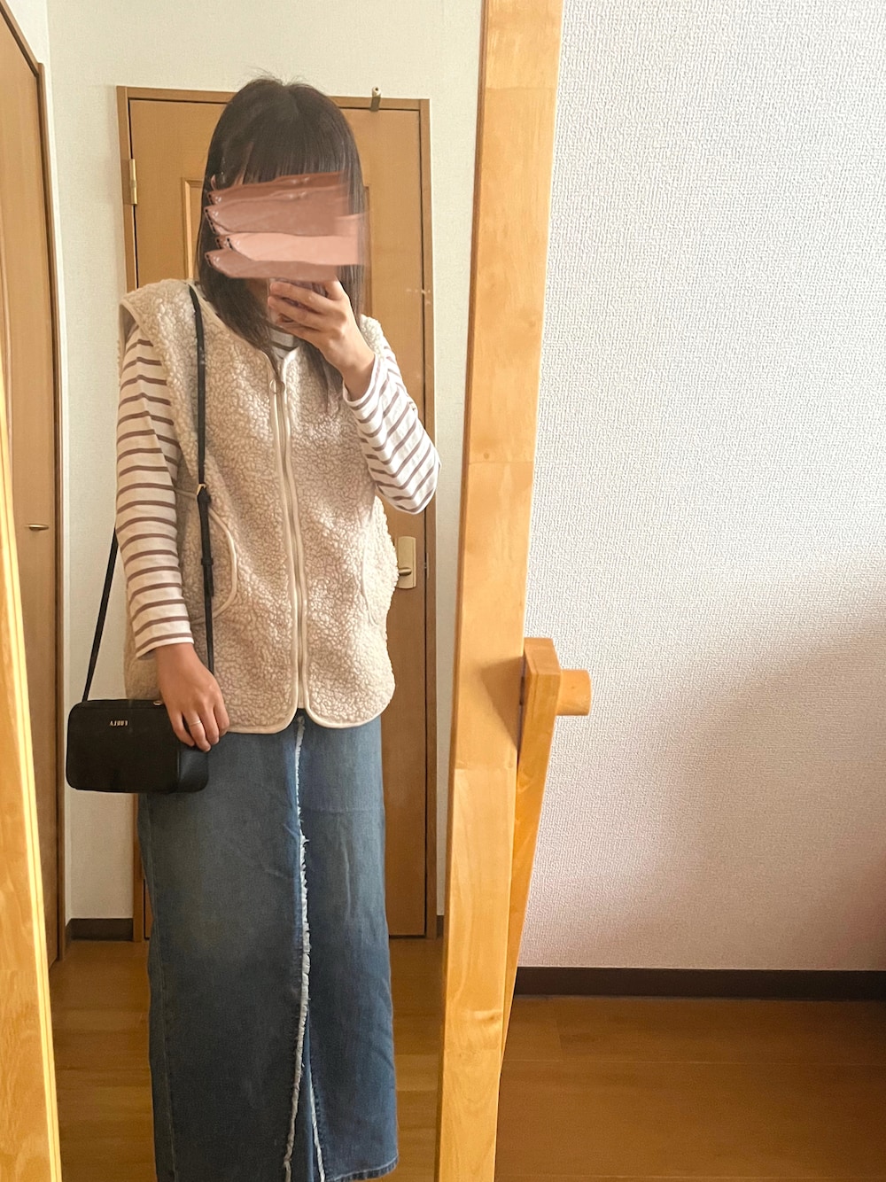 みーのベスト「リラックスボアベスト」を使ったコーディネート