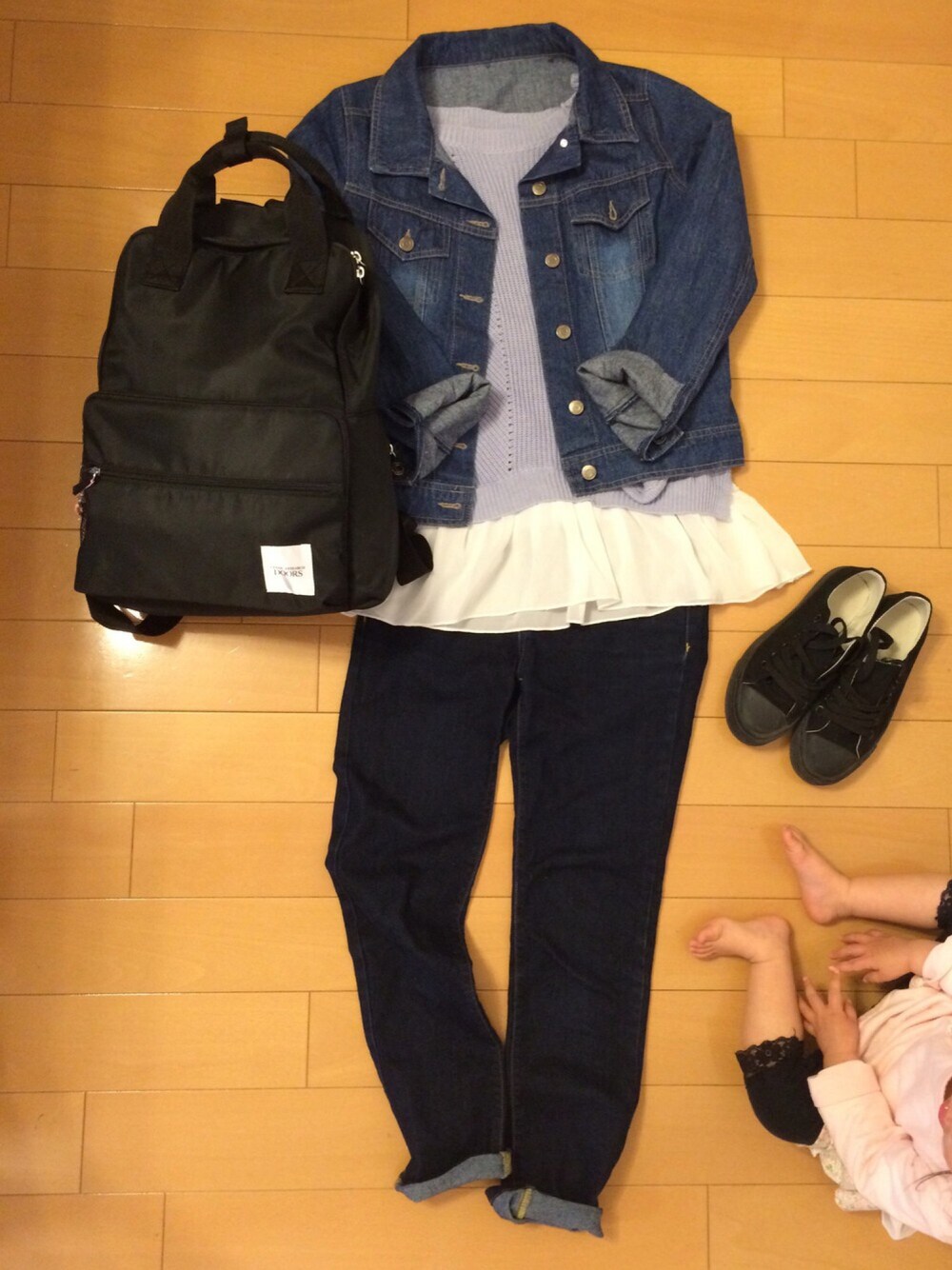先日、家族3人で動物園に行った時の コーデです^ ^ この日は暑いくらいで 動物園日和でした♪* 写真を撮ってると娘が座って 写り込んでしまいました…(笑) 絶対に動きませんϵ( 'Θ' )϶ このマザーズリュックは ポケットが多くて ポケットの配置も工夫されていて 使いやすいです♡