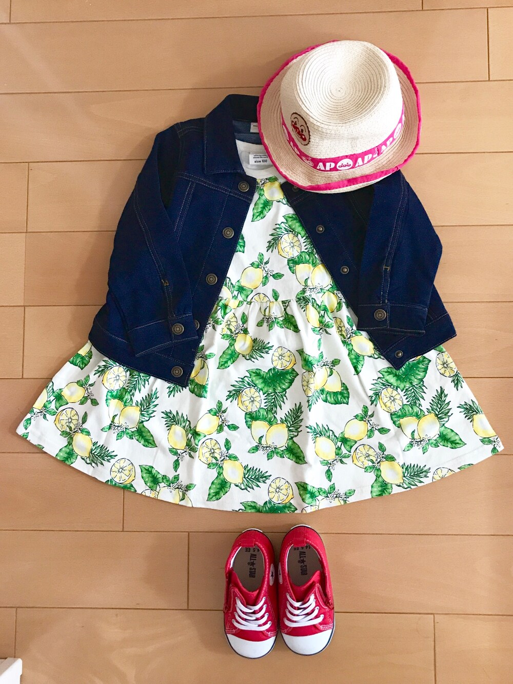 レモン柄のワンピースは お店の名前を見ずに入ったので ブランドがわかりません(TT) 袋も捨てちゃって… 帽子は娘のお気に入りで 形が崩れてきています(笑) 今日は娘(もうすぐ3歳)の コーデでした♪*