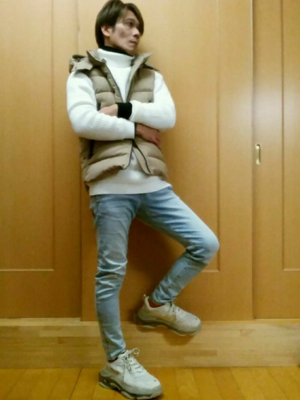ダウンベストのコーデ二回目です。 前回とほとんど同じって気もしますがw しかしインナーのUNIQLO、ホントいい商品ですね。