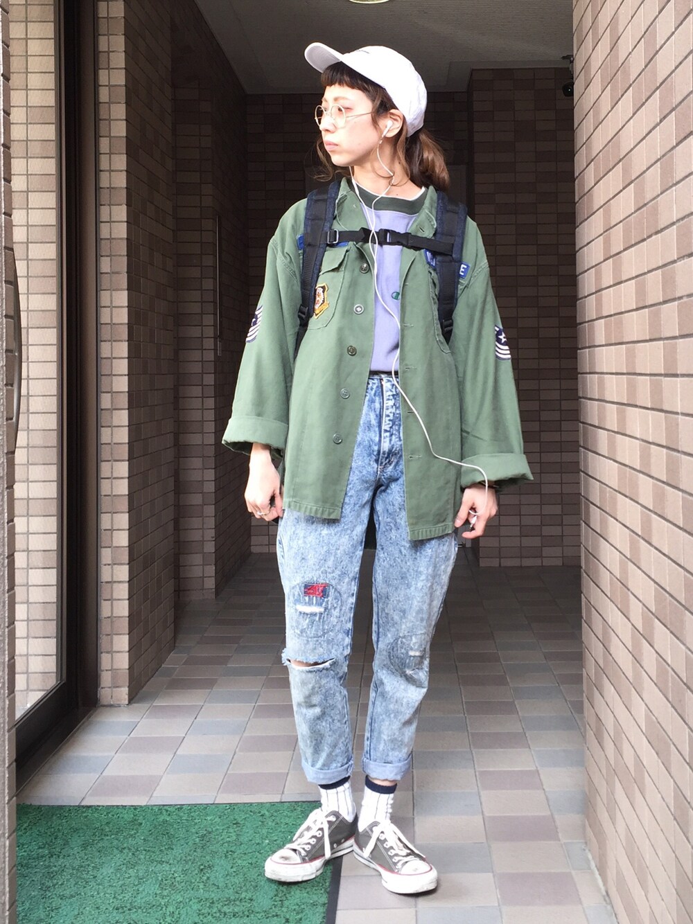 一枚羽織ったバージョンです まだ肌寒くてミリタリーのアウターばかり着ているので似たようなコーデばかりになってしまう(T_T) 春は難しいですね Instagram:@ayanokuso