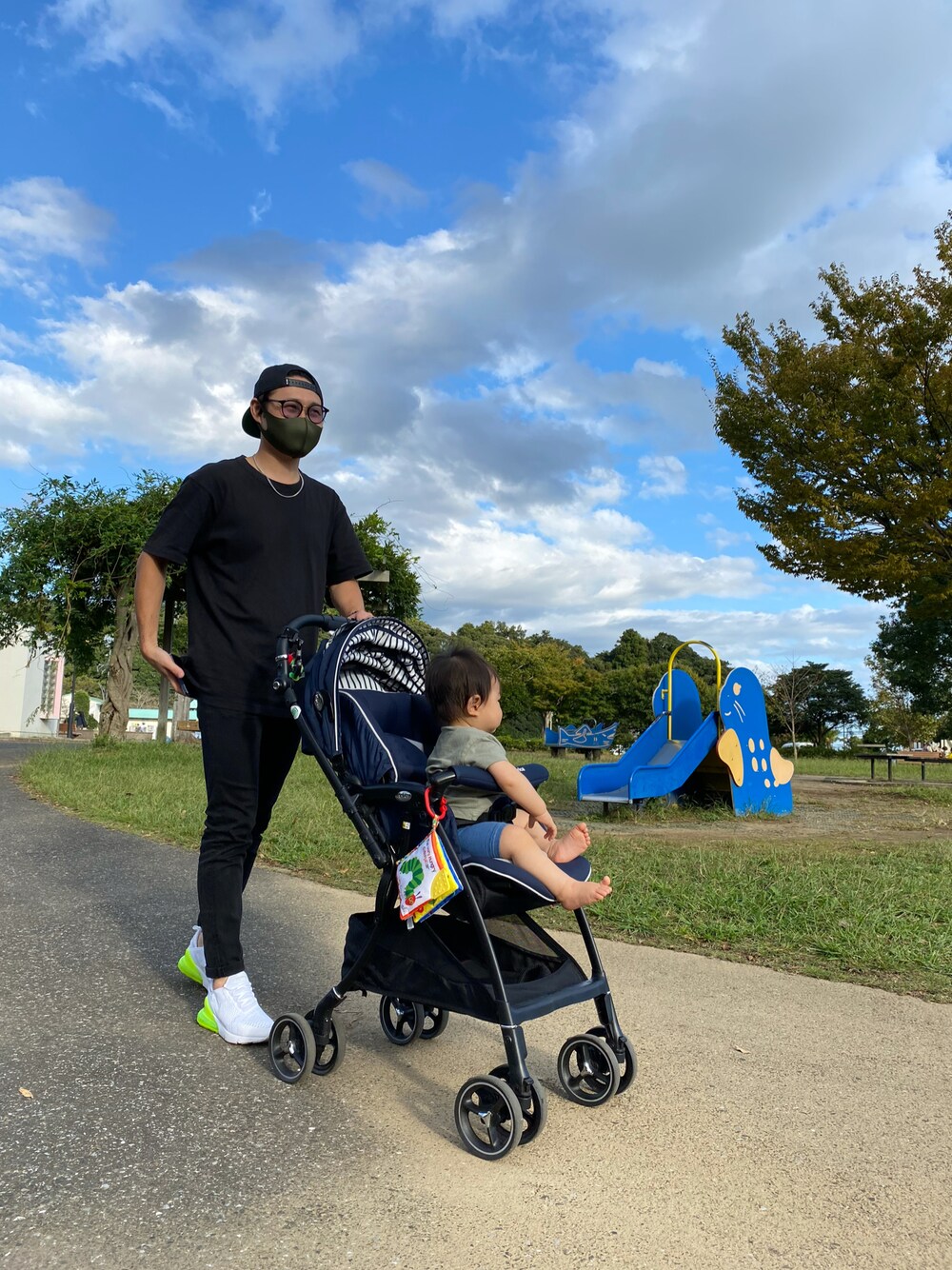 オールブラック🚶🏻 公園散歩👨👩👦