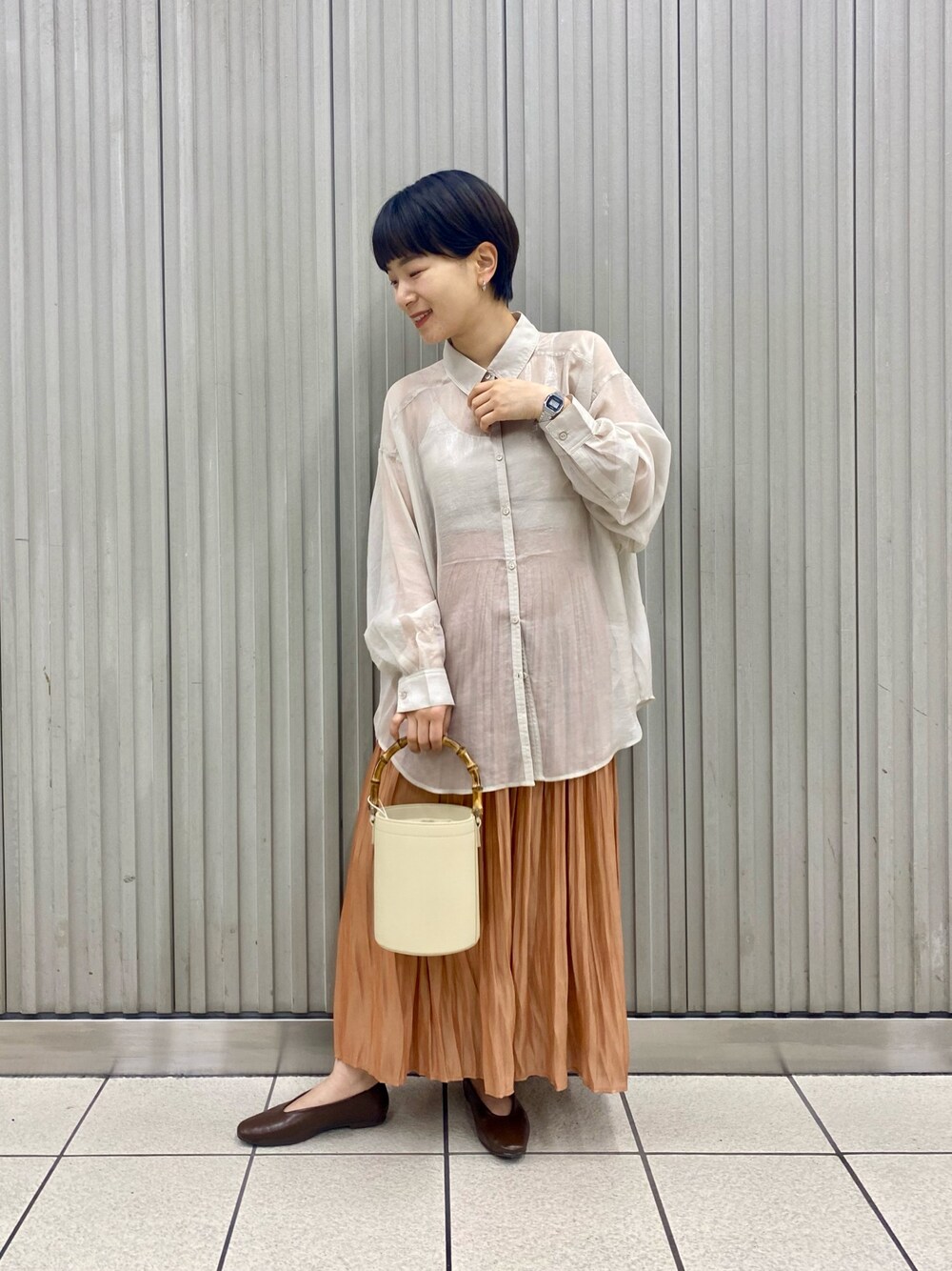 しだみのシャツ/ブラウス「ハクプリントドルマンシャツ」を使ったコーディネート