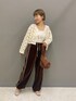 リアルバイしたベロアパンツでコーディネートを組んでみました^^ サイドのラインにはキラキラのラメが施されていて、ゆったり楽ちんなのに高見えします♡ トップスは、季節を選ばず使えるレースブラウスに決まり!!ぎゅっと敷き詰められた花柄がお顔を明るく見せてくれます! 是非店頭でご覧ください!