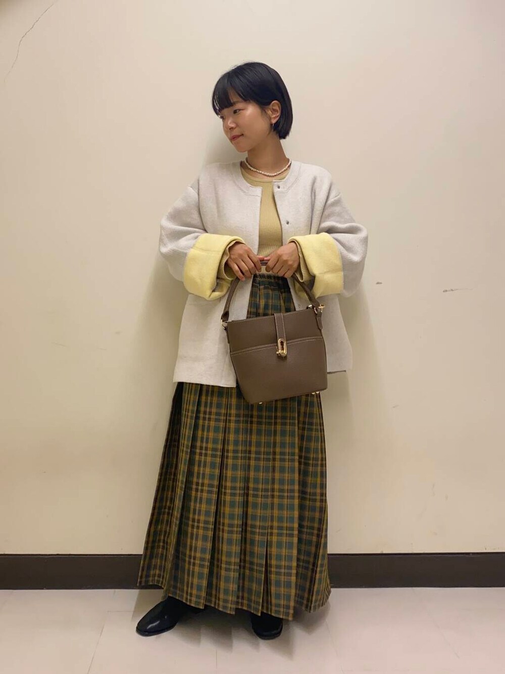 毎年定番のニットコートが今年も入荷しました♡ どの色も袖を折り返すと違うカラーが施されていて、どれも可愛くて迷います!! 軽いアウターとしてさらっと着用できて、これからの季節大活躍するアイテムです!!^^ 私はレトロなチェックスカートと合わせましたが、デニムやスラックスなどのパンツスタイルも◎です! 是非店頭でご覧ください!