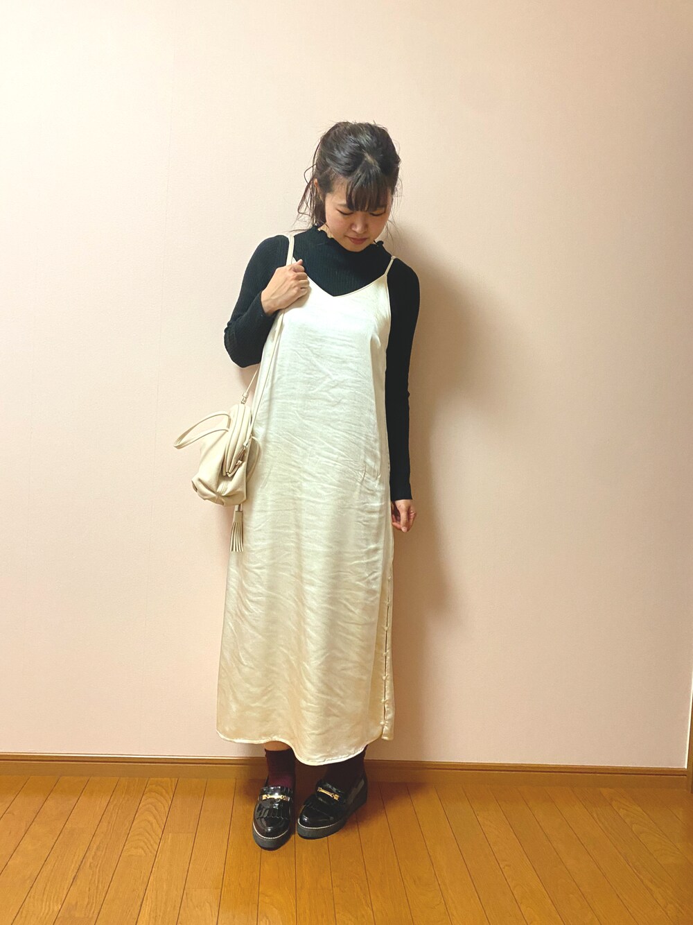 wakanaのニット/セーター「シャイニーリブフリルネックセーター(長袖)」を使ったコーディネート