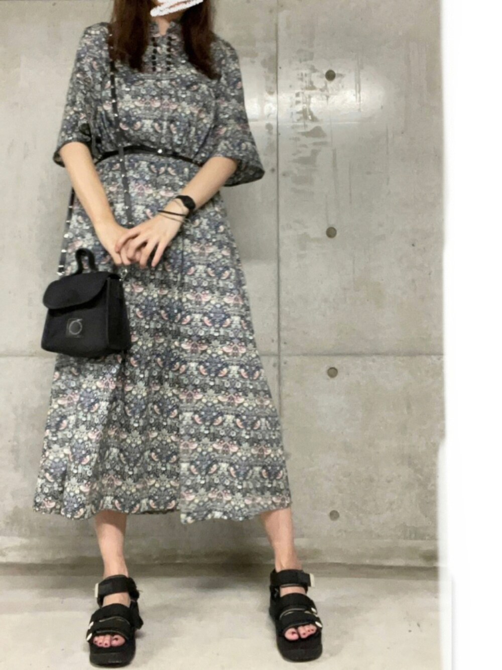 💙💙🖤 オトナかわいい総柄ワンピース✨✨ チャイナボタンがお気に入り✨✨