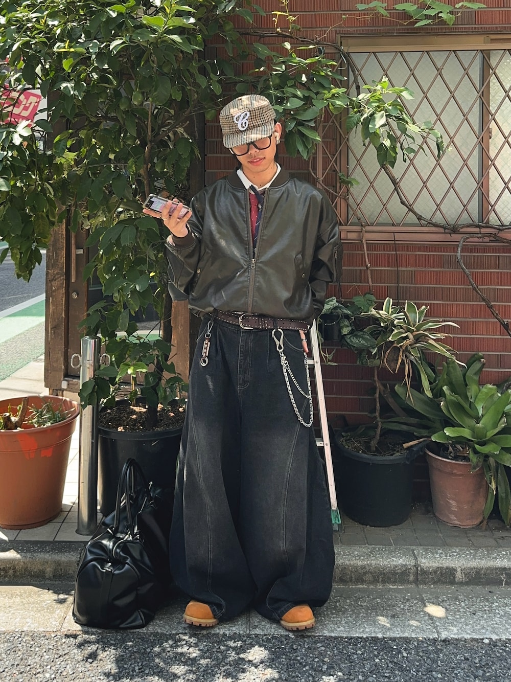 ネクタイスタイルの秋のストリートシック ブラックとブラウンの合わせが大人っぽく決まります^^