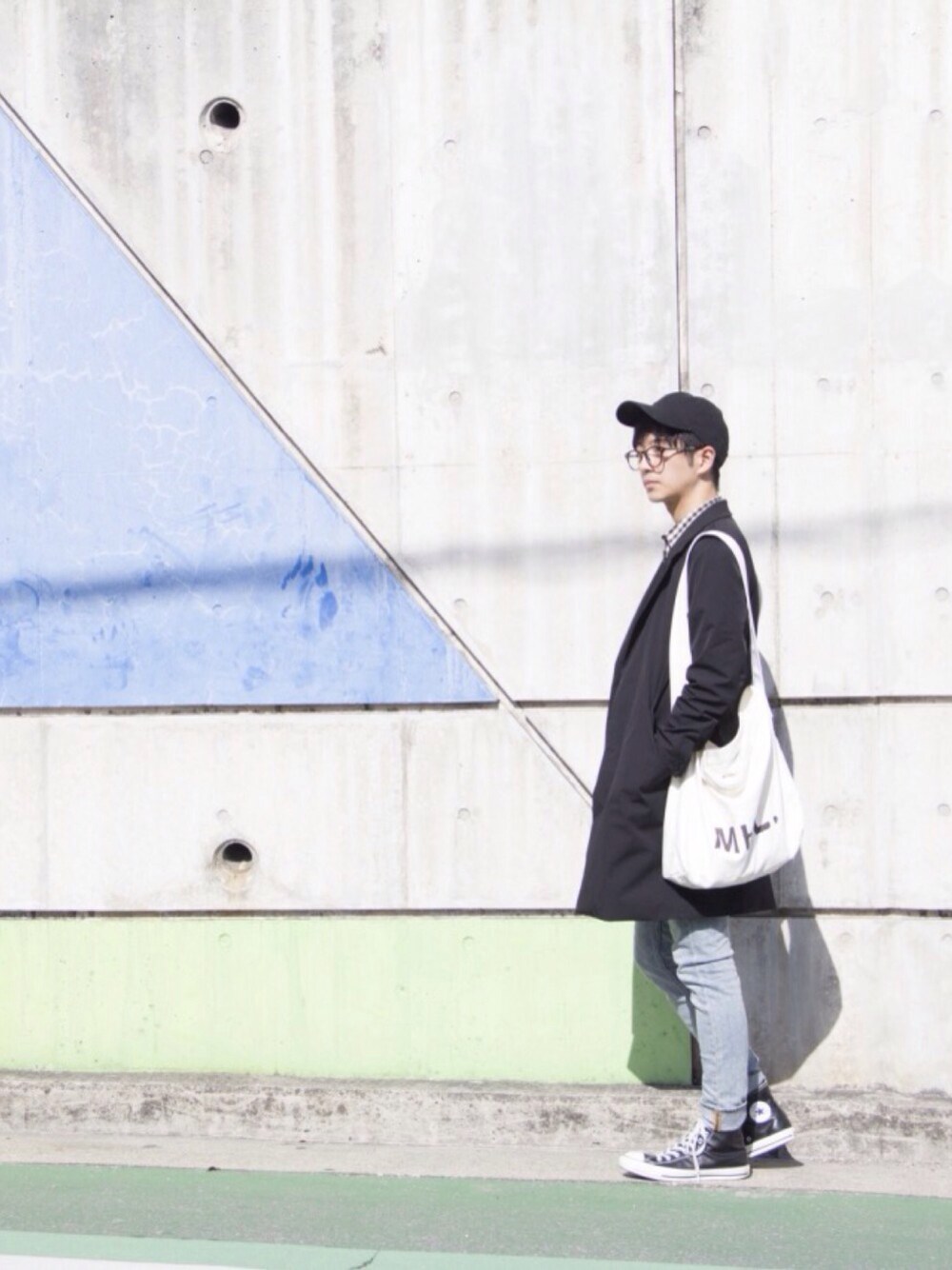 久しぶりに、お外撮りです。 風が強くて大変でした…! というわけで、珍しくキャップです。 寒の戻りというやつでしょうか。 陽がかげると、風の冷たい大阪でした。 トートを探していたら、 後輩がMHL.をくれました。 レッツヘビーユーズ!