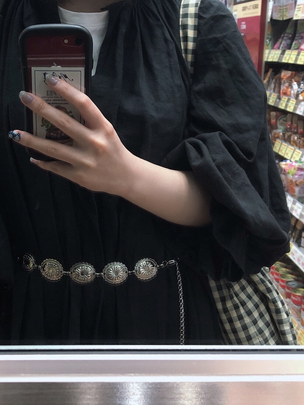 ワンピースの丈が短いので黒いプリーツ重ねてデニムパンツ履いてます