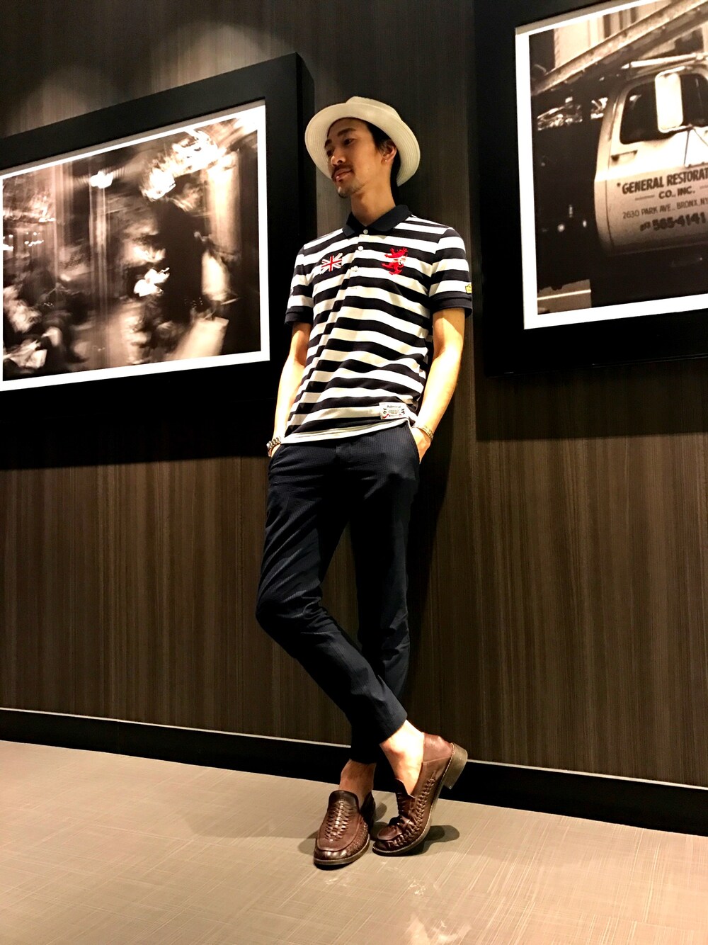 ニコルクラブフォーメン×アドミラルのポロシャツを使った大人カジュアルコーデです。 ボーダーをチョイスし、 可愛くなりすぎないよう、 大人っぽくスタイリングしてみました!